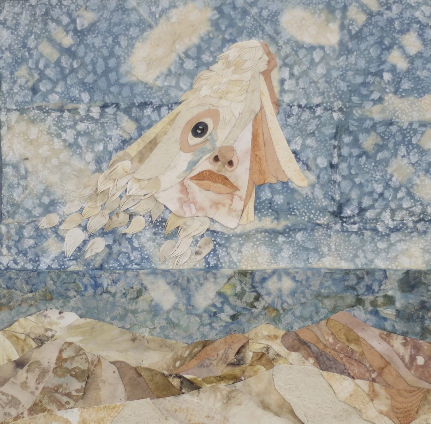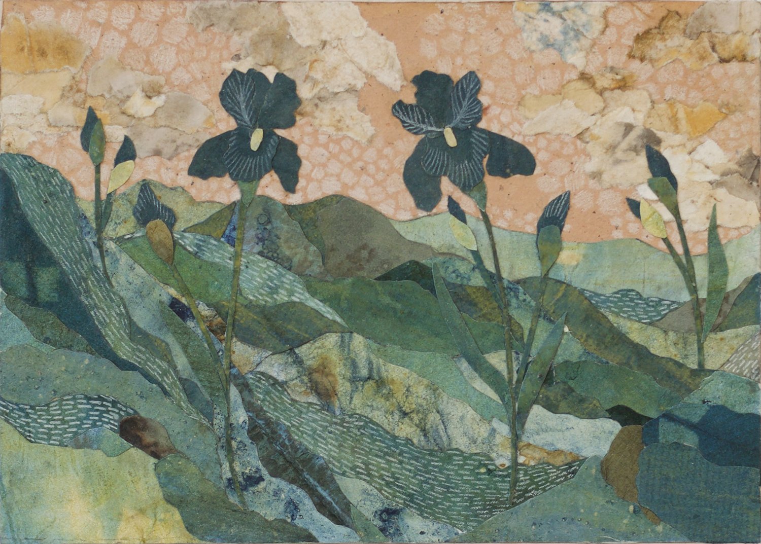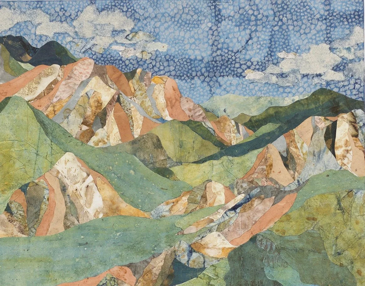 My name is Elana and I’m natural dyer and visual artist based in Tucson, Arizona making illustrative cut paper collages from naturally dyed papers dyed with local plants. I love the the process of making a collage: I create an intricate drawing and then use tiny scissors and tweezers to piece my work together. My collages reflect my internal world and I often depict mountains, deserts, and canyons as a backdrop to explore concepts most central to me. I also dye silk scarves with plants. I also do commissioned collages of places and concepts nearest to the hearts of my clients.